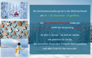 Wir danken Ihnen herzlich für Ihr Verständnis und Ihre Mithilfe, damit unsere Orte auch weiterhin sauber und ordentlich bleiben.